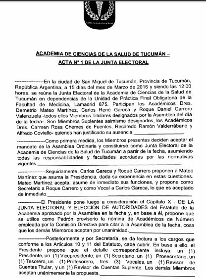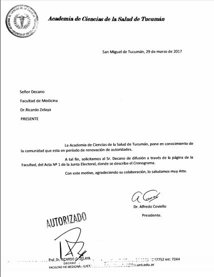 La Academia de Ciencias de la Salud de Tucumán pone el conocimiento de la comunidad que está en período de renovación de autoridades.