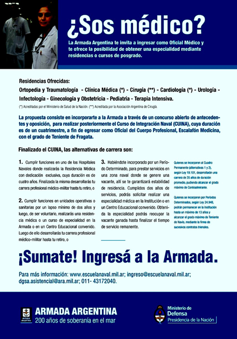 ¿SOS MEDICO? SUMATE A LA ARMADA ARGENTINA