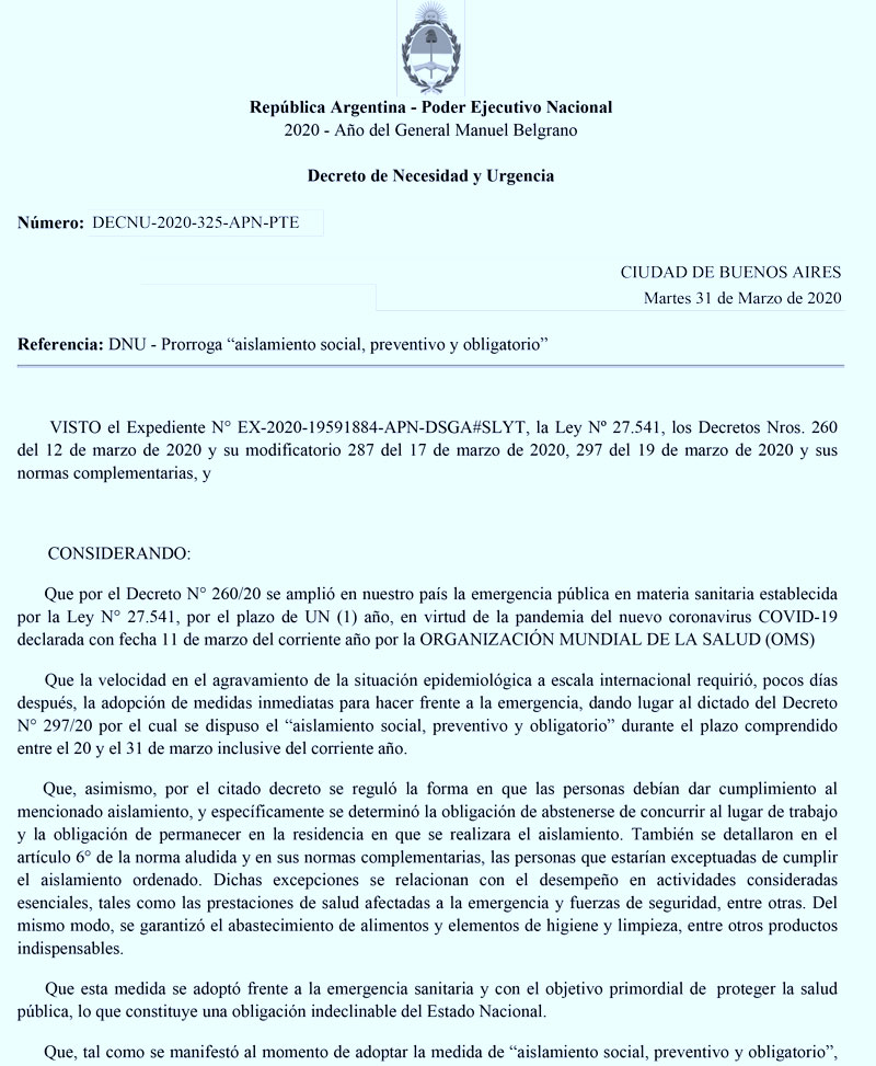 Adjuntamos para su conocimiento, el decreto presidencial que prorroga la cuarentena y al cual adhiere la Facultad, les deseamos una buena jornada en familia y les enviamos un cordial saludo.