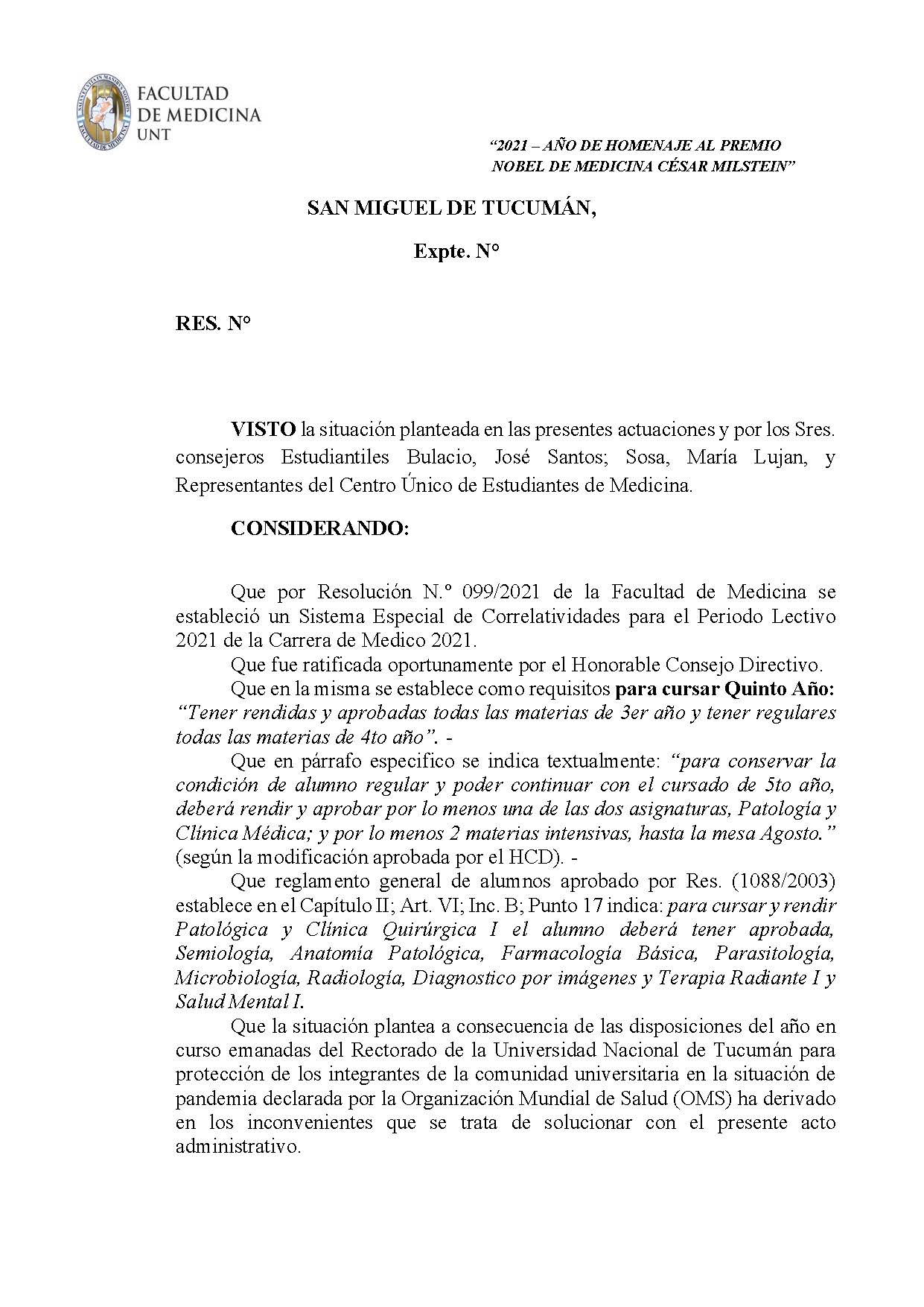 Facultad de Medicina UNT resuelve por Resolución 662/ 2021 la vuelta a la presencialidad plena cuidada en concordancia con la declaración del CIN del día 29/09/2021