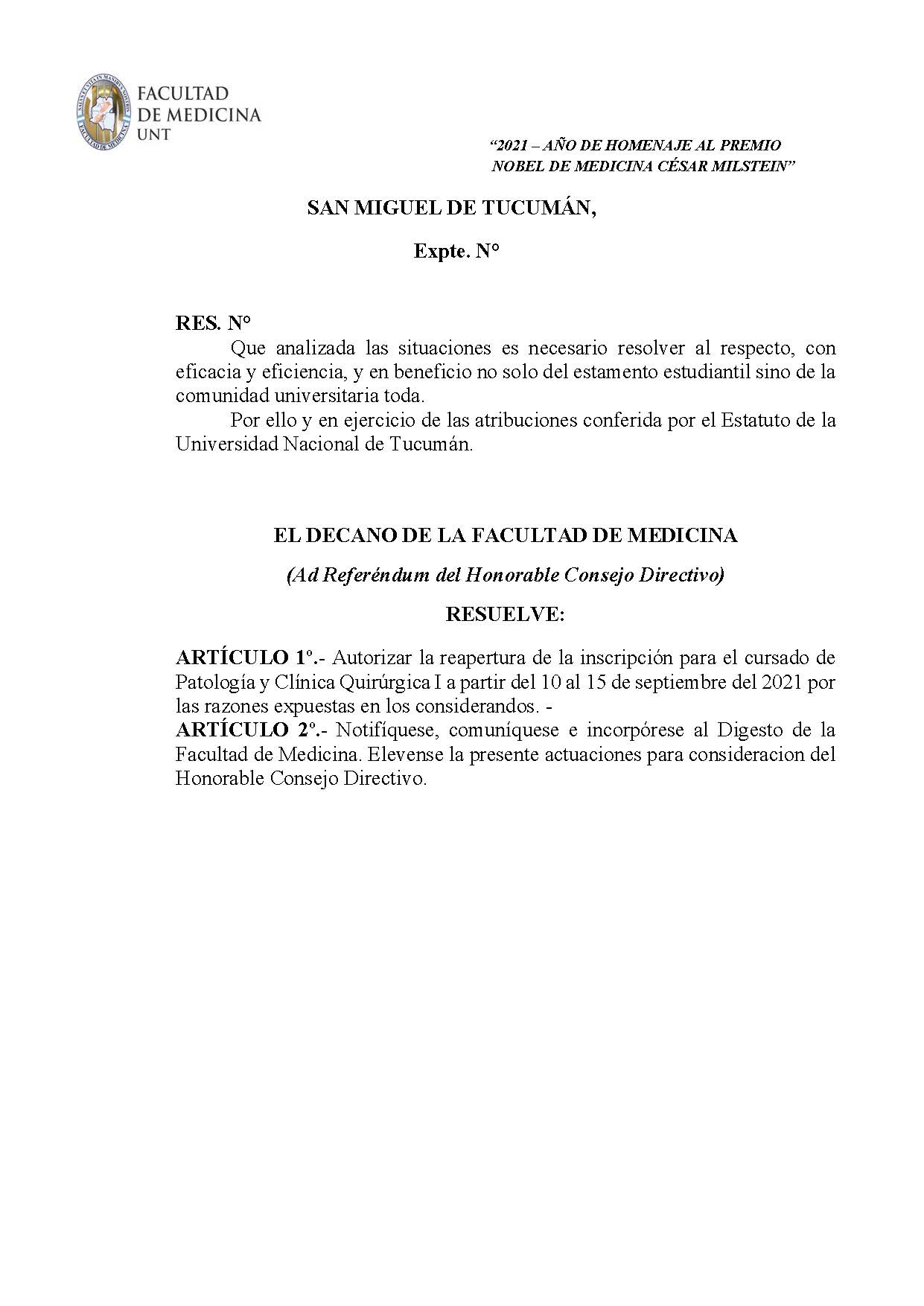 RESOLUCIÓN REAPERTURA INSCRIPCIÓN CIRUGÍA