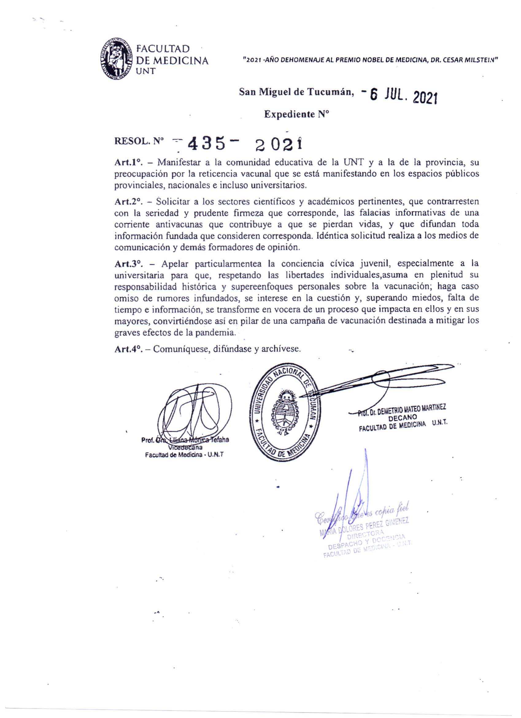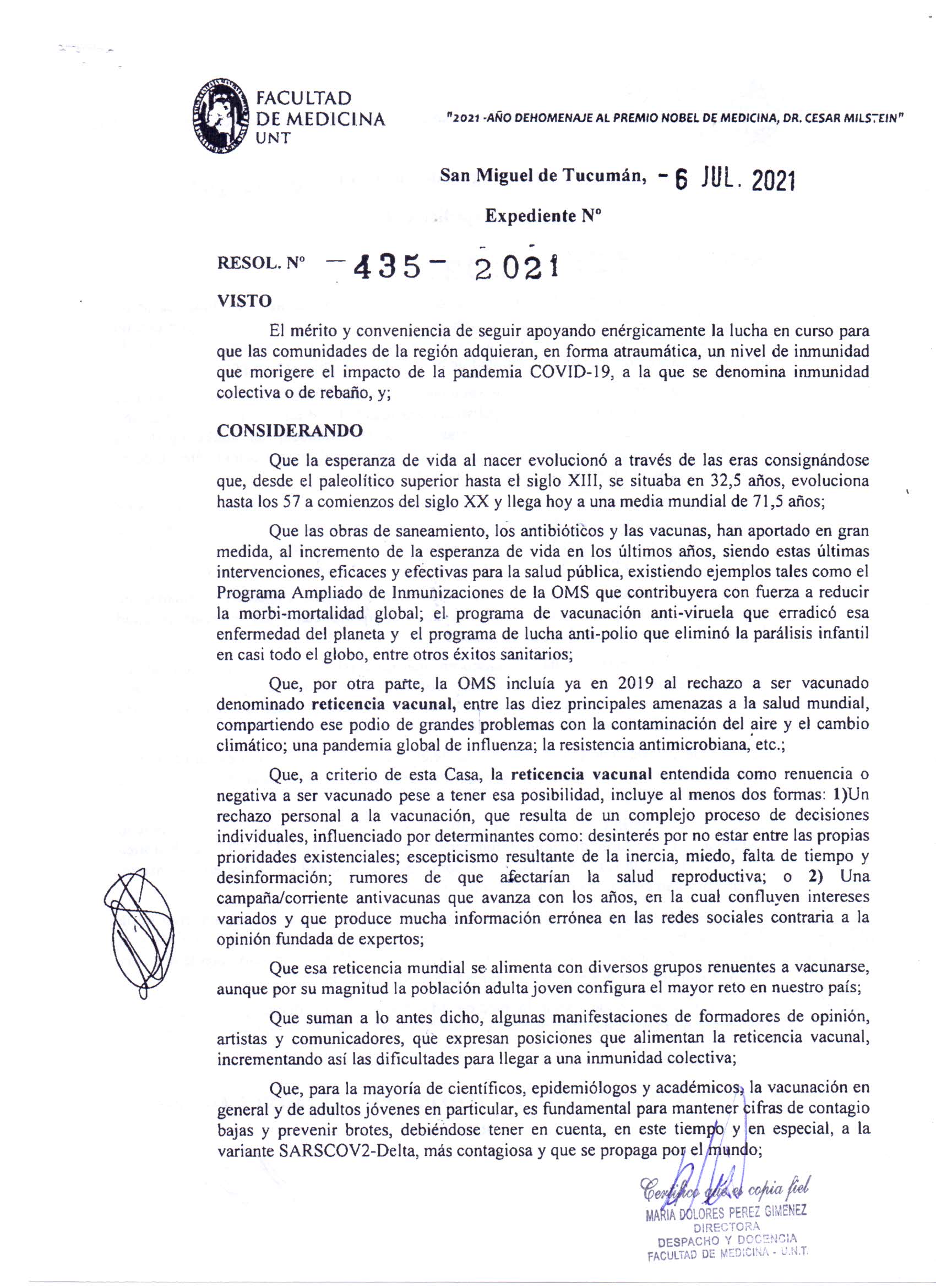 POSICIÓN DE LA FACULTAD CON RESPECTO A LA VACUNACIÓN