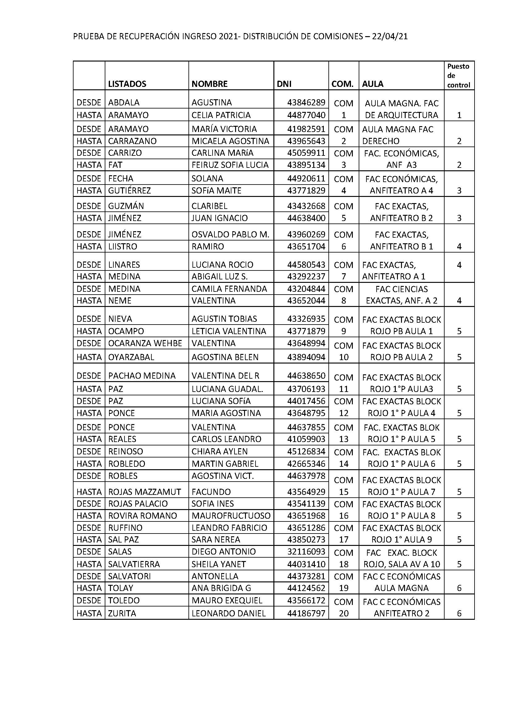 INFORMACIÓN IMPORTANTE PARA ASPIRANTES RECUPERACIONES 2021 SEDE SALTA