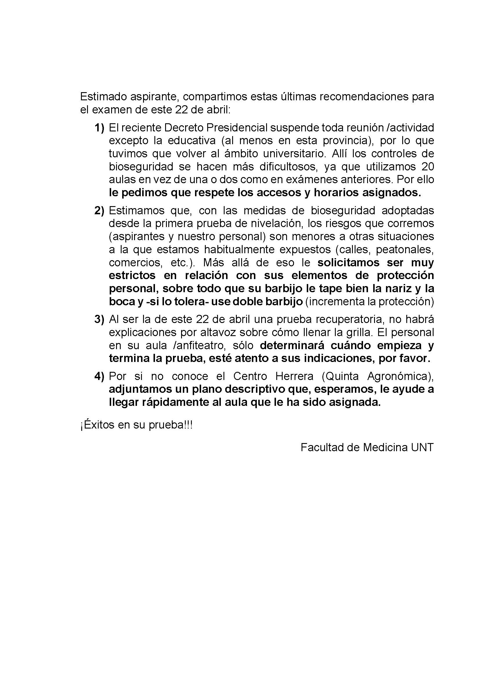 INFORMACIÓN IMPORTANTE PARA ASPIRANTES RECUPERATORIO 2021 SEDE TUCUMAN