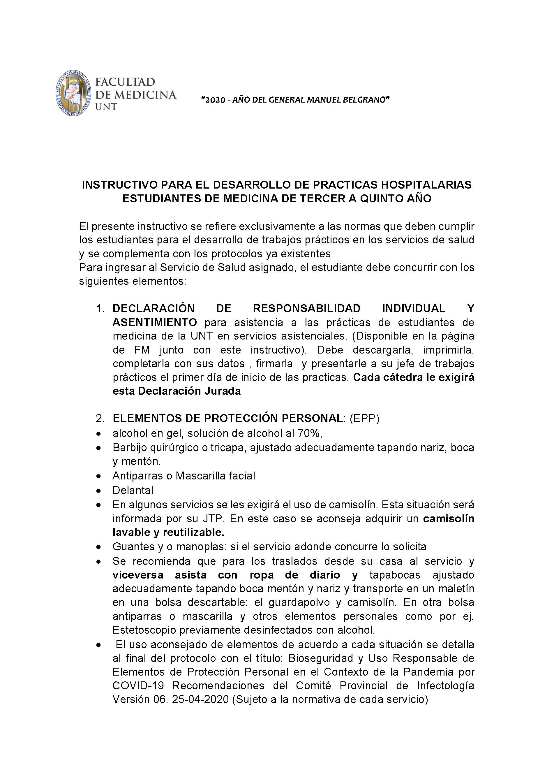INSTRUCTIVO PARA EL DESARROLLO DE PRACTICAS HOSPITALARIAS ESTUDIANTES MEDICINA TERCER A QUINTO AÑO
