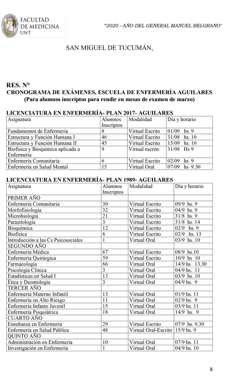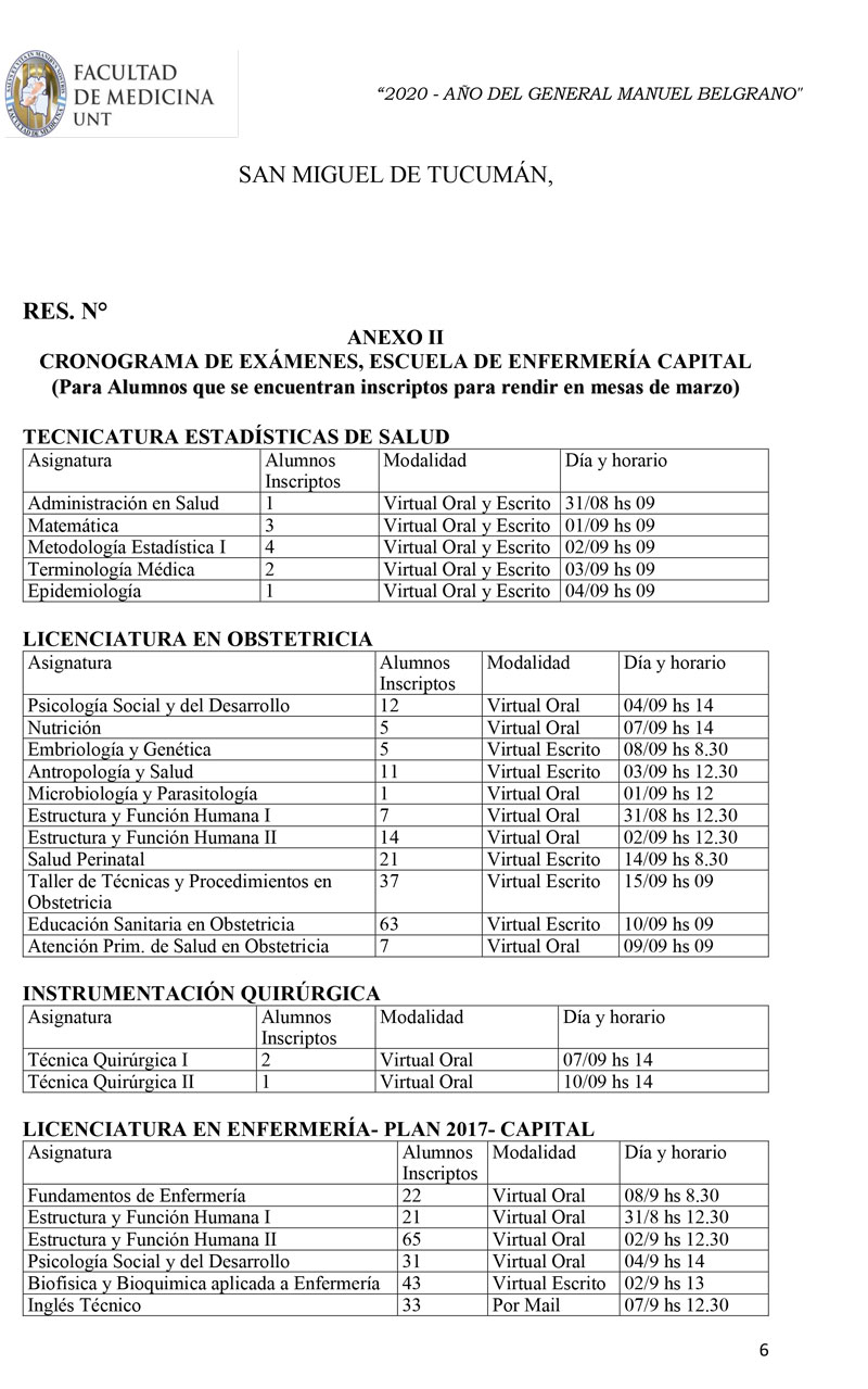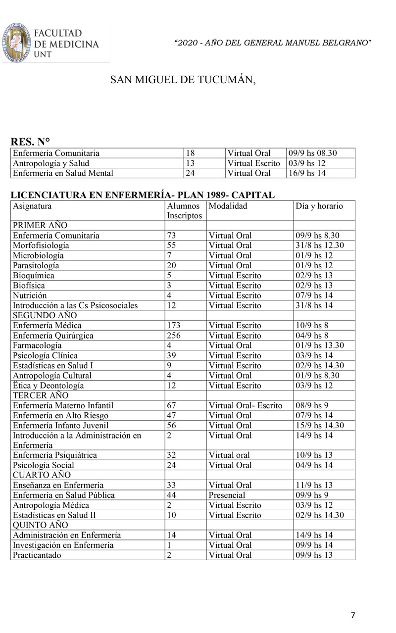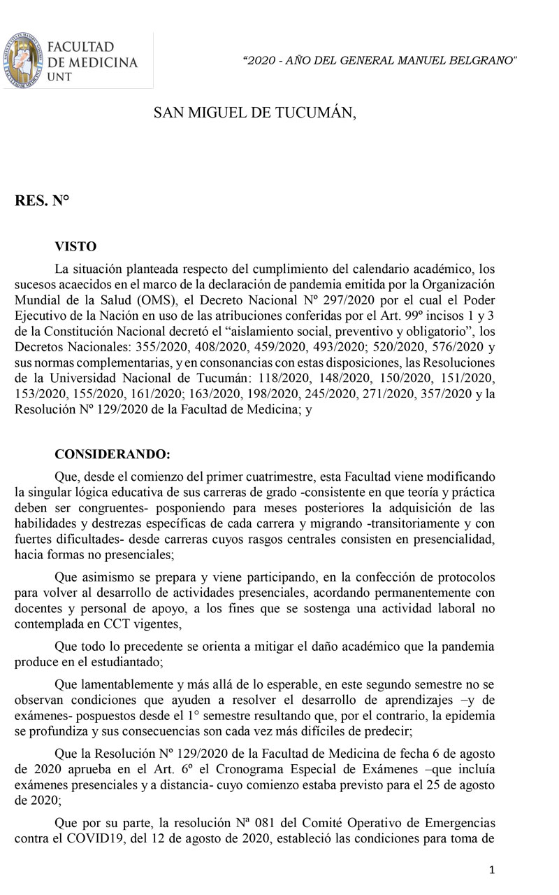 La resolución dictada incluye a inscriptos para rendir el turno correspondiente a la última mesa de marzo y al examen final de la pasantía rural cohorte octubre-abril de la carrera de médico. Una vez concluida esta mesa, se programarán nuevos turnos de exámenes.