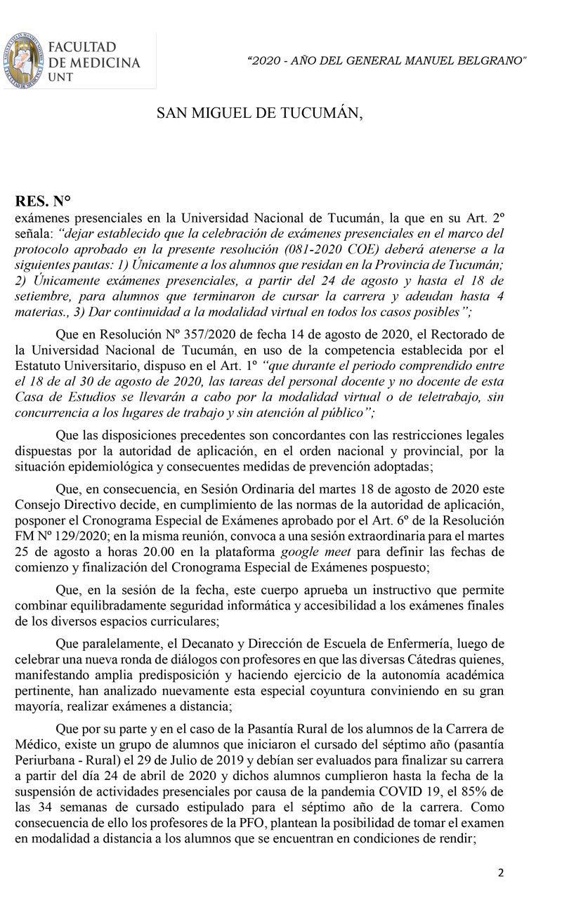 La Facultad comunica al estudiantado, que luego de las reuniones celebradas entre sus autoridades con profesores de las diversas carreras, el Consejo Directivo aprobó los cronogramas para exámenes virtuales, anexos de la resolución que se publica en la fecha.