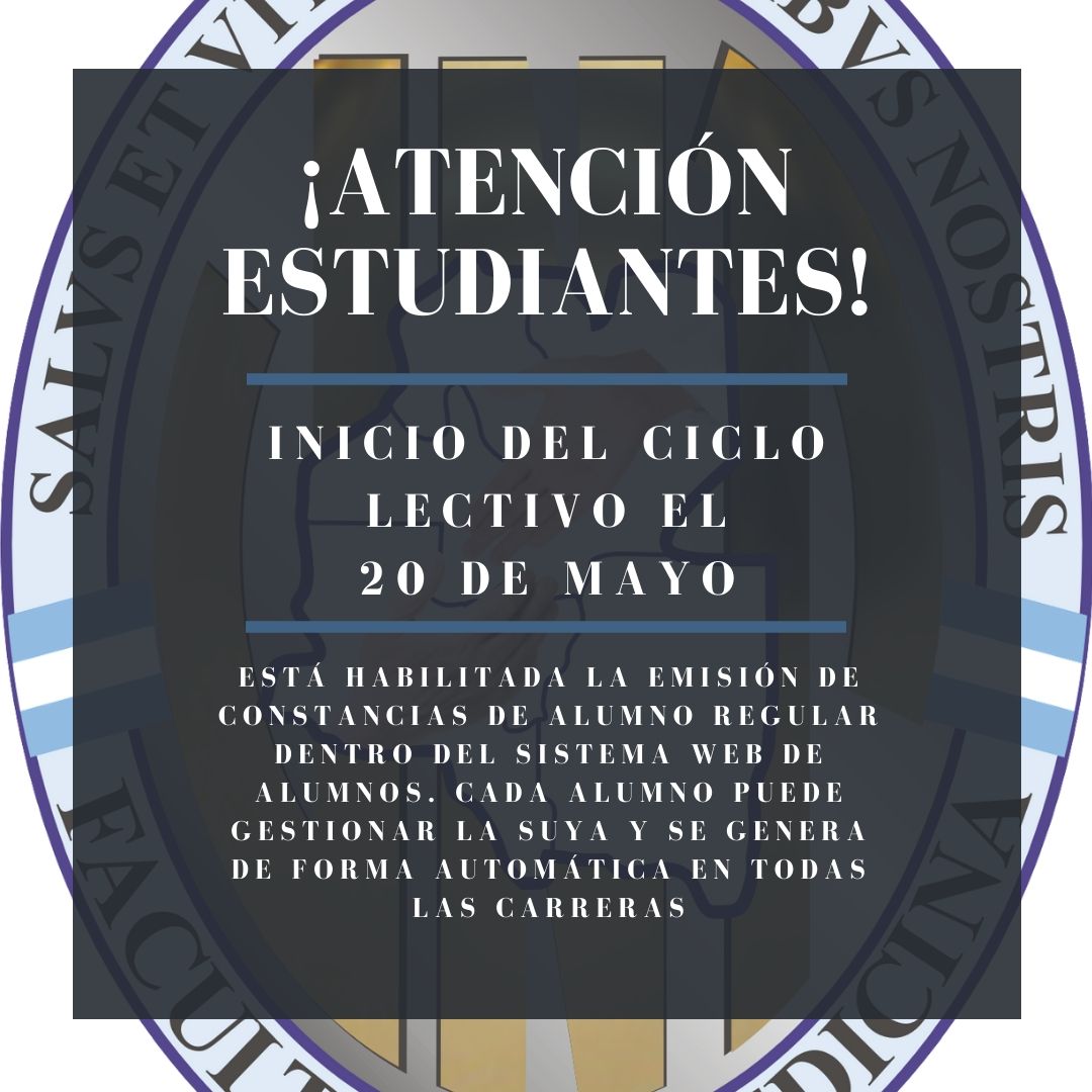 Estimado estudiante de las carreras de la Facultad de Medicina: ante el inminente inicio de clases a través de tecnologías digitales, les solicitamos contesten hasta el día viernes 08/05 la siguiente encuesta, la misma es de carácter obligatorio. Muchas gracias.