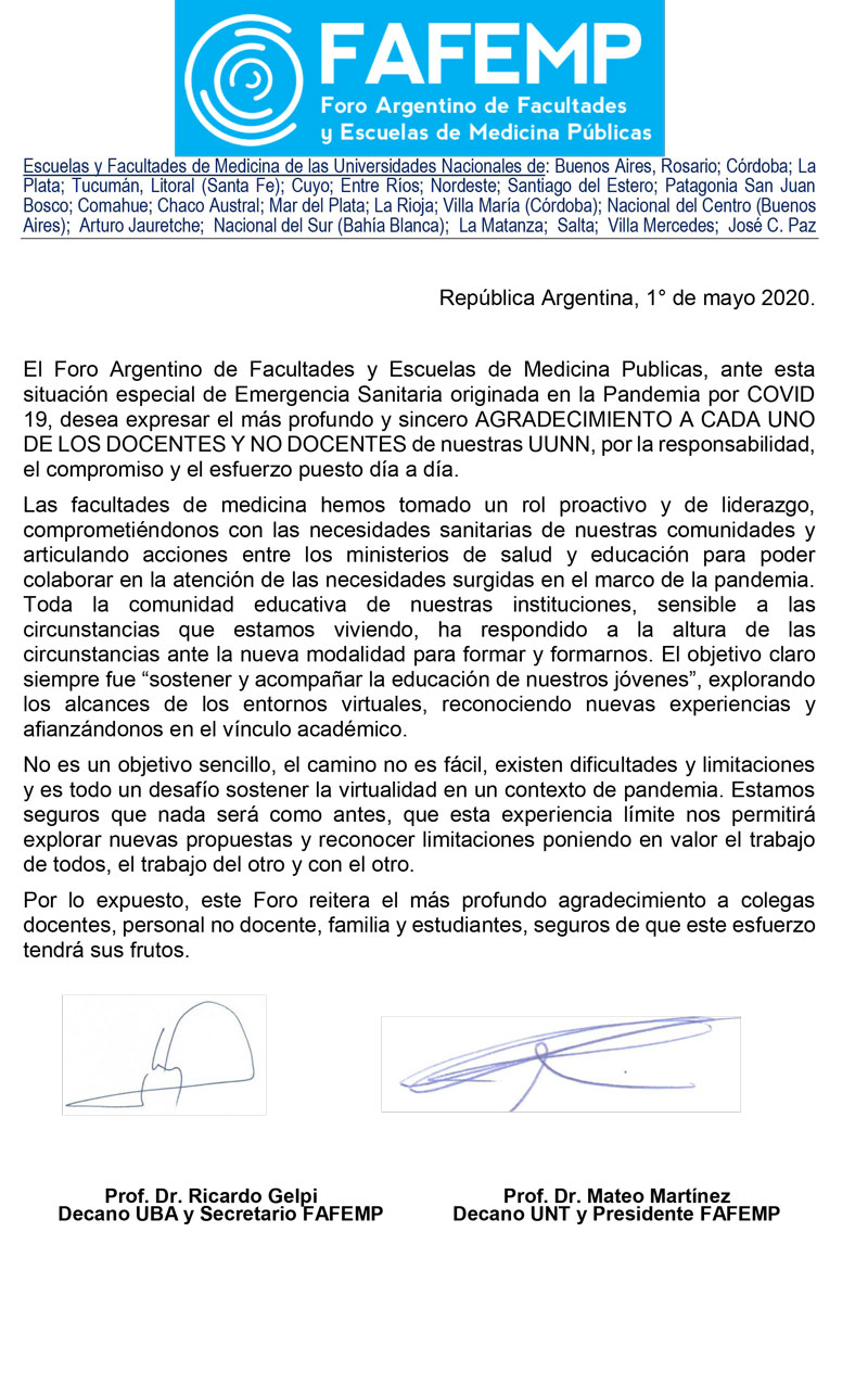 DECLARACIÓN DE FAFEMP AGRADECIENDO A DOCENTES Y NODOCENTES