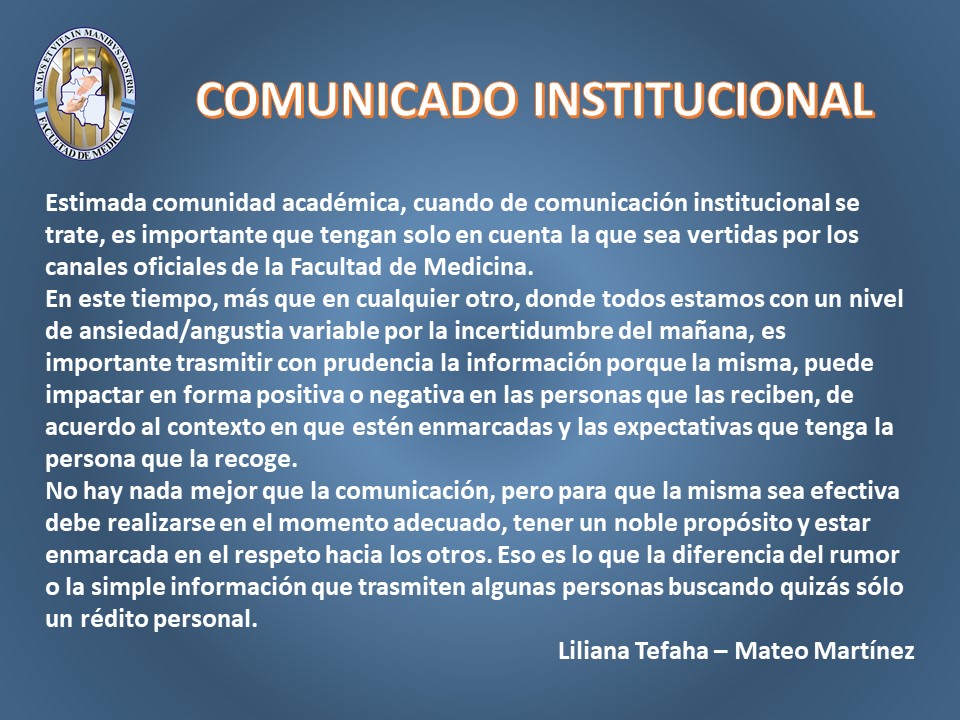 Estimada comunidad de la Facultad de Medicina. Buenos días