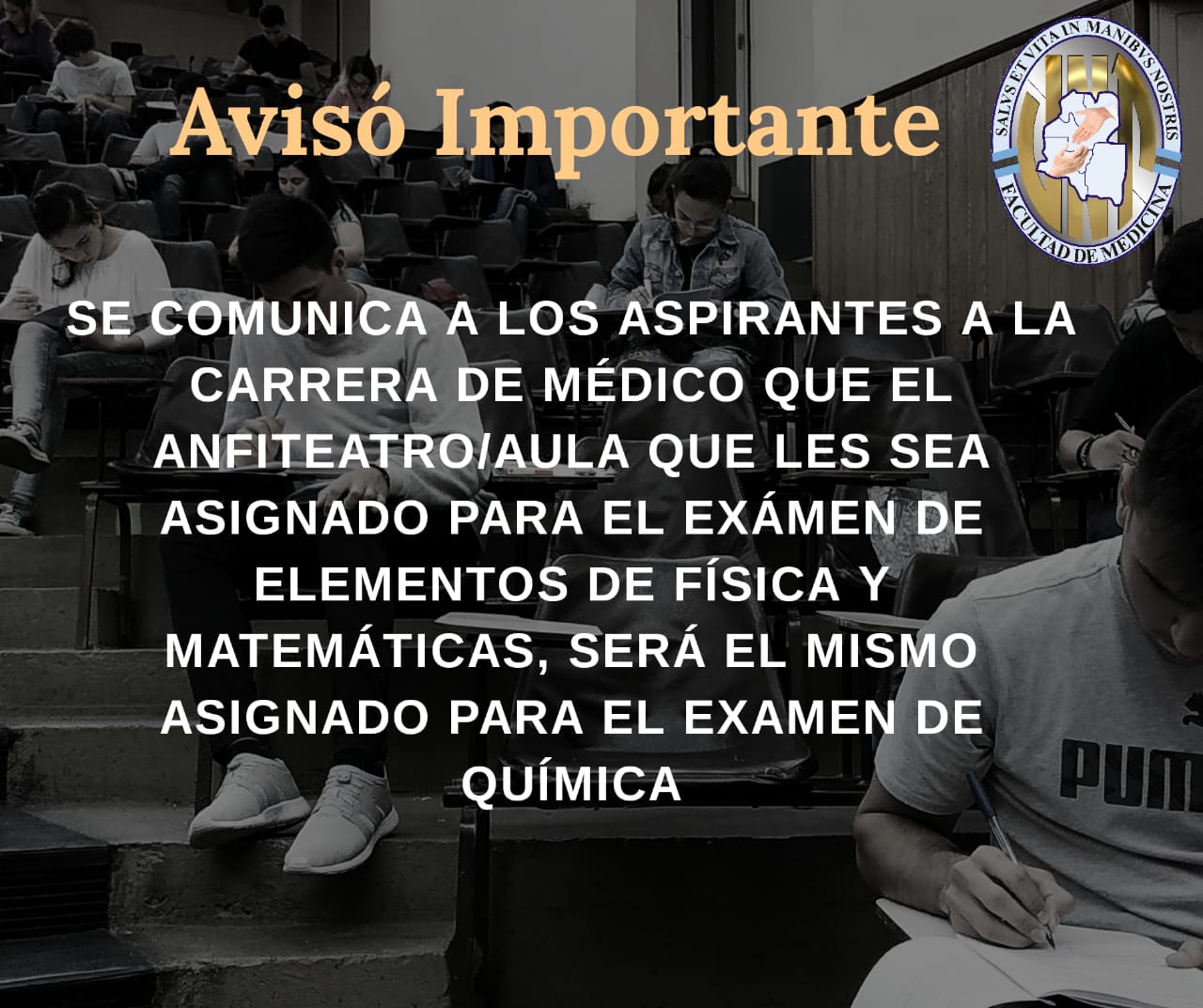 AVISO IMPORTANTE PARA ASPIRANTES AL INGRESO A LA CARRERA DE MÉDICO